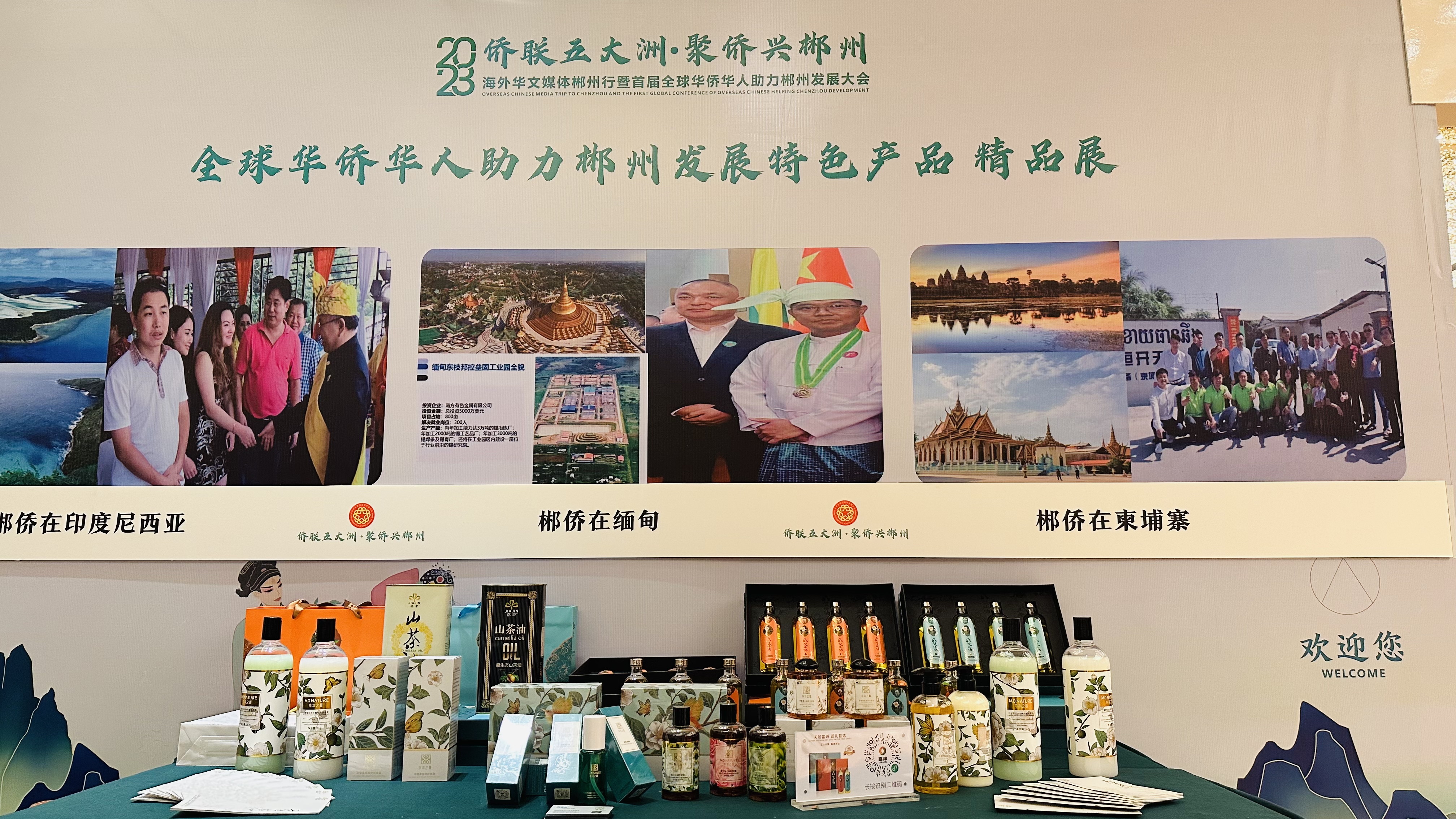 会场内,一轮又一轮项目签约搏得掌声雷动,会场外,一场独具“郴心郴意”的特色产品展火热进行,41家本土企业汇聚成一个向华侨华人们展示郴州特色产品的平台,趁着本次大会的东风,不仅让海外的技术、企业“引进来”,也让更多“郴品郴味”走出国门,走向世界。